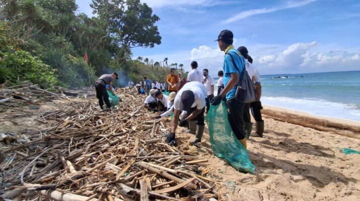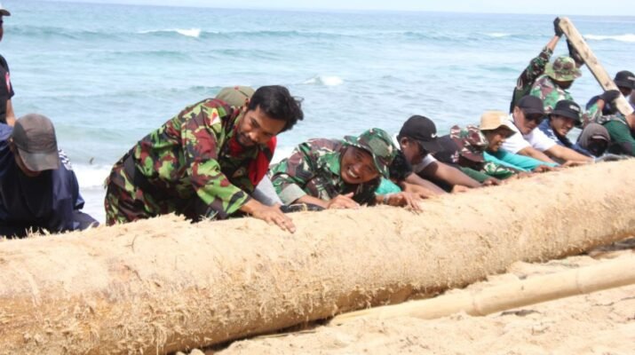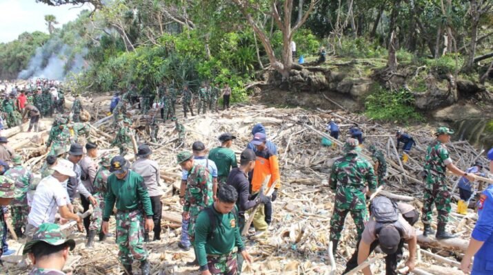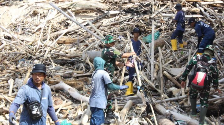 Sinergi Tanpa Batas TNI dan Warga ‘Geruduk’ Pantai Pancur Bersihkan Sampah Kayu