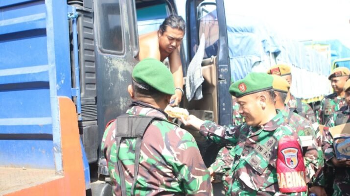 Jumat Penuh Kepedulian di Ketapang: Aksi Sunyi Prajurit Kodim 0825 Banyuwangi Menghangatkan Hati Sopir Truk dengan Berbagi Makanan dan Minuman
