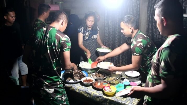 Banyuwangi – Kehangatan suasana dan sejuknya angin malam berhembus, membuat suasana kekeluargaan terasa syahdu. Inilah cerita dibalik layar setelah seharian bekerja mengecat rumah layak huni di TNI Manunggal Membangun Desa (TMMD) ke 125 Banyuwangi.