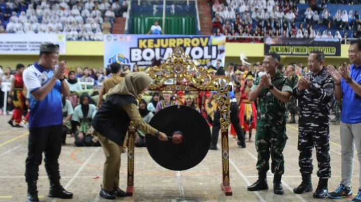 Suasana penuh semangat olahraga mewarnai GOR Tawang Alun Banyuwangi pada Senin (27/10/2025) pagi. Ajang bergengsi Kejurprov Jawa Timur Bola Voli Indoor U-19 Tahun 2025 resmi dibuka dengan meriah oleh jajaran Forkopimda Banyuwangi. Acara pembukaan yang dipimpin oleh Kapolresta Banyuwangi Kombes Pol Rama Samtama Putra tersebut turut dihadiri Dandim 0825/Banyuwangi Letkol Arm Triyadi Indrawijaya, S.H., M.I.P., bersama Bupati Banyuwangi Hj. Ipuk Fiestiandani, serta sejumlah pejabat daerah dan tokoh olahraga.