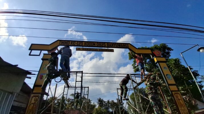Banyuwangi – Di tengah semangat perayaan Hari Ulang Tahun (HUT) ke-80 Kemerdekaan Republik Indonesia, Satuan Tugas (Satgas) TNI Manunggal Membangun Desa (TMMD) ke-125 Kodim 0825/Banyuwangi menunjukkan dedikasi nyata dengan melaksanakan pemasangan gapura di jalan menuju jembatan Desa Kesilir, Kecamatan Siliragung, Minggu (17/8/2025).