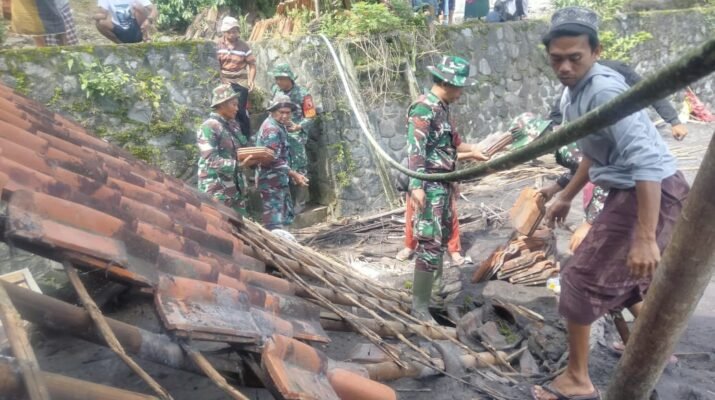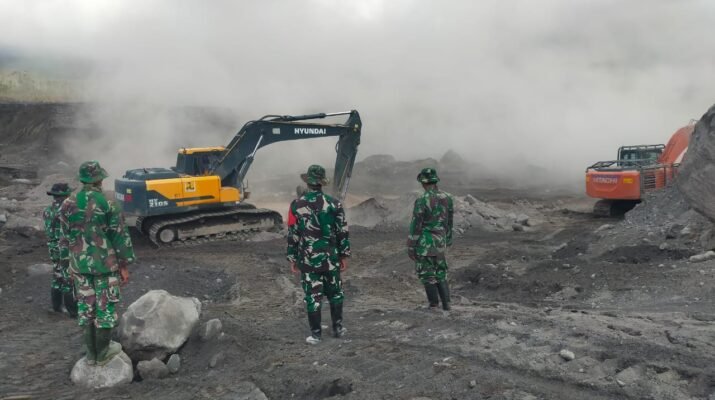 Lumajang — Upaya pemulihan pasca banjir lahar dingin Gunung Semeru terus dilakukan oleh jajaran Kodim 0821/Lumajang. Serda Didik, bersama enam personel lainnya, terjun langsung