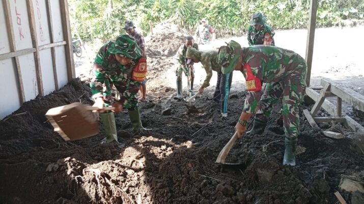 Lumajang – Upaya percepatan pemulihan pasca erupsi Gunung Semeru terus dilakukan oleh jajaran TNI. anggota Kodim 0821/Lumajang yang dipimpin Peltu M. Sholeh turun langsung
