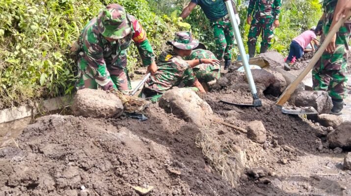 Lumajang – Upaya pemulihan infrastruktur dasar pasca erupsi Gunung Semeru terus dilakukan TNI. Personel gabungan Kodim 0821/Lumajang bersama Yonif 527/BY, BPBD dan relawan, melaksanakan