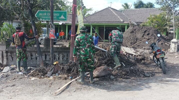 Lumajang – Upaya pemulihan pascaerupsi Gunung Semeru kembali diperkuat melalui aksi nyata para personel TNI yang tergabung dalam Kodim 0821 Lumajang dan Yonif 527/BY,
