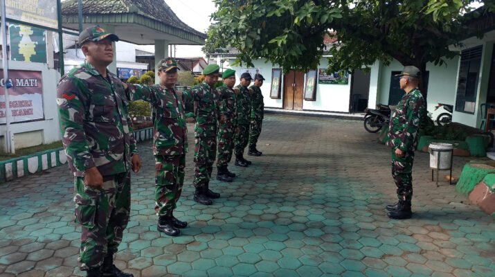 Gambiran – Dalam rangka meningkatkan kedisiplinan dan profesionalisme prajurit, Bati Tuud Koramil 0825/06 Gambiran, Peltu Mujiono, memimpin apel pagi yang dilanjutkan dengan sesi Jam