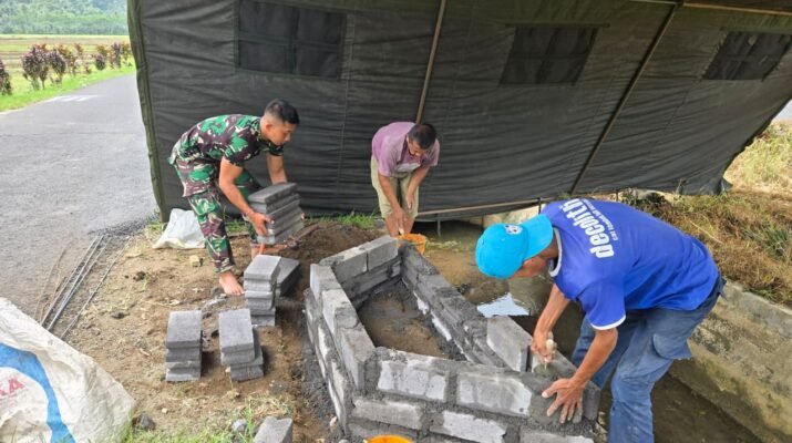Satgas TMMD Ke-126 Kodim 0818/Malang-Batu yang berasal dari Satuan Yonzipur 5/Abw melaksanakan pembangunan Monumen TMMD di Dusun Krajan 1B, Desa Lebakharjo, Kecamatan Ampelgading, Kabupaten Malang.