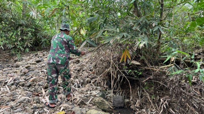 Satuan Tugas TNI Manunggal Membangun Desa (TMMD) dari Yon Armed 8/Udhata Yudha terus menunjukkan semangat juang tinggi dalam pelaksanaan kegiatan fisik berupa normalisasi sungai di Dusun Lebaksari, RT 48 RW 21, Desa Lebakharjo, Kecamatan Ampel Gading, Kabupaten Malang.