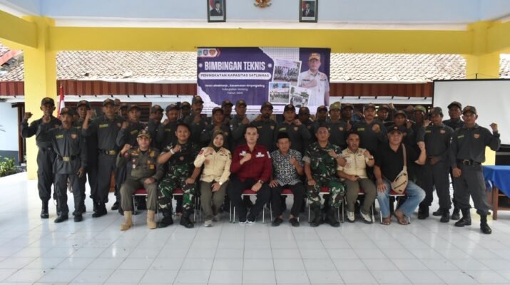 Satuan Tugas TNI Manunggal Membangun Desa (TMMD) ke-126 bersama Pemerintah Desa Lebakharjo dan Satuan Polisi Pamong Praja (Satpol PP) Kabupaten Malang menggelar bimbingan teknis peningkatan kapasitas Satuan Perlindungan Masyarakat (Satlinmas) di Desa Lebakharjo, Kecamatan Ampelgading, Kabupaten Malang, Sabtu (11/10/2025).