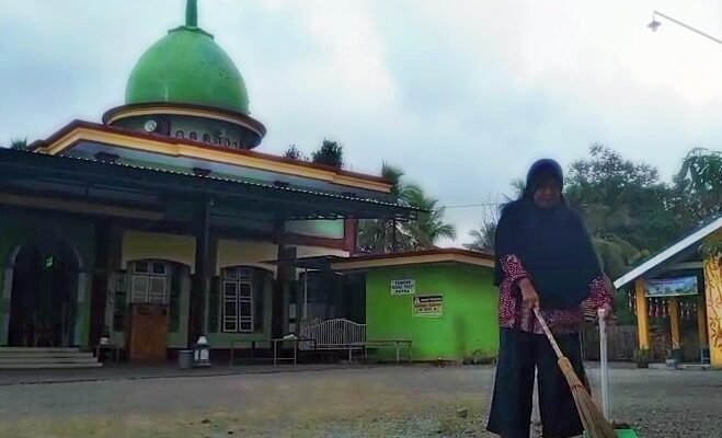 Banyuwangui – Di sudut Kota The Sunrise The Java (Matahari Terbit di Pulau Jawa) sebutan Kota Banyuwangi. Seorang lansia periang, penuh humoris dan pekerja keras, mengabdikan dirinya bersih-bersih Masjid Miftahul Huda, Silir Sari, Kabupaten Banyuwangi.