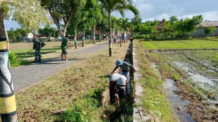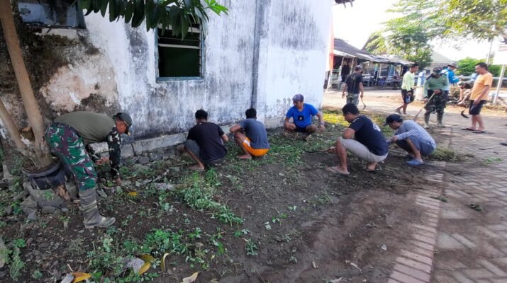 Gambiran, 23 Nopember 2025 – Komandan Rayon Militer (Danramil) 06 Gambiran Kodim 0825 Banyuwangi Kapten Inf Sumito Pujatmiko, SE memimpin langsung kegiatan Karya Bakti