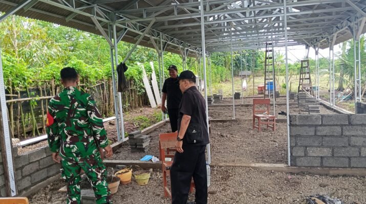 Pantang Lelah, Babinsa Produktif Bersama Warga Gotong Royong Selesaikan Pembangunan Kandang Ternak, Wujud Kemanunggalan TNI, Dukung Program Ketahanan Desa.