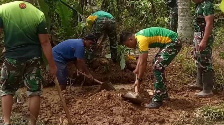 Satuan Tugas TNI Manunggal Membangun Desa (TMMD) dari Yon Armed 8/Udhata Yudha terus menunjukkan semangat juang tinggi dalam pelaksanaan kegiatan fisik berupa normalisasi sungai
